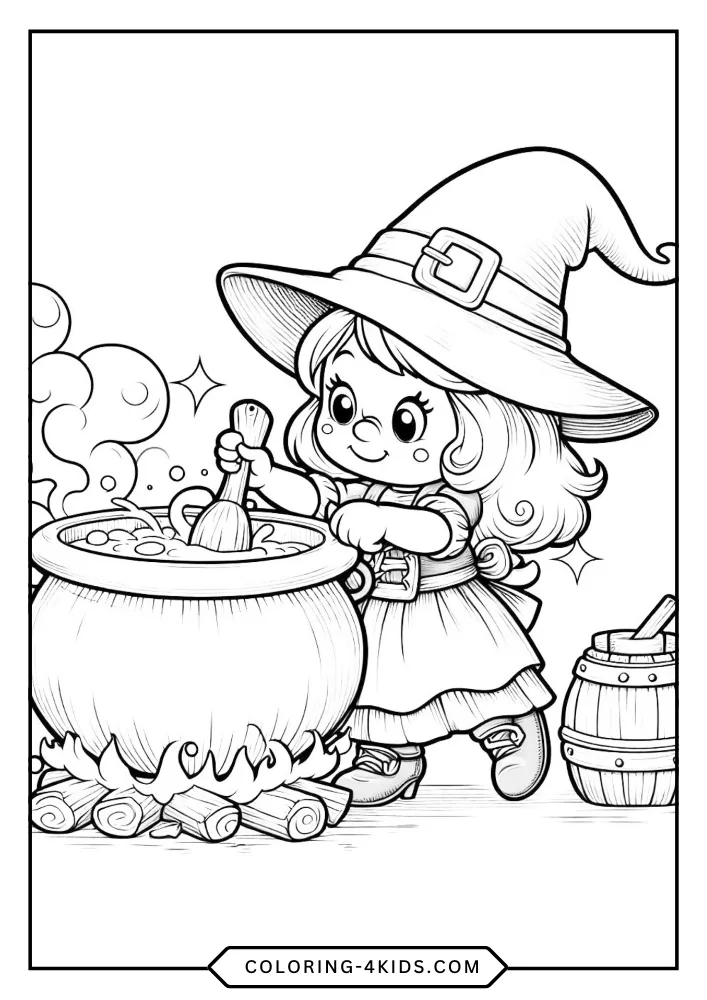 - Fine Motor Skills: Coloring the small bubbles in the cauldrons and the stars in the background helps children develop steady hand-eye coordination.