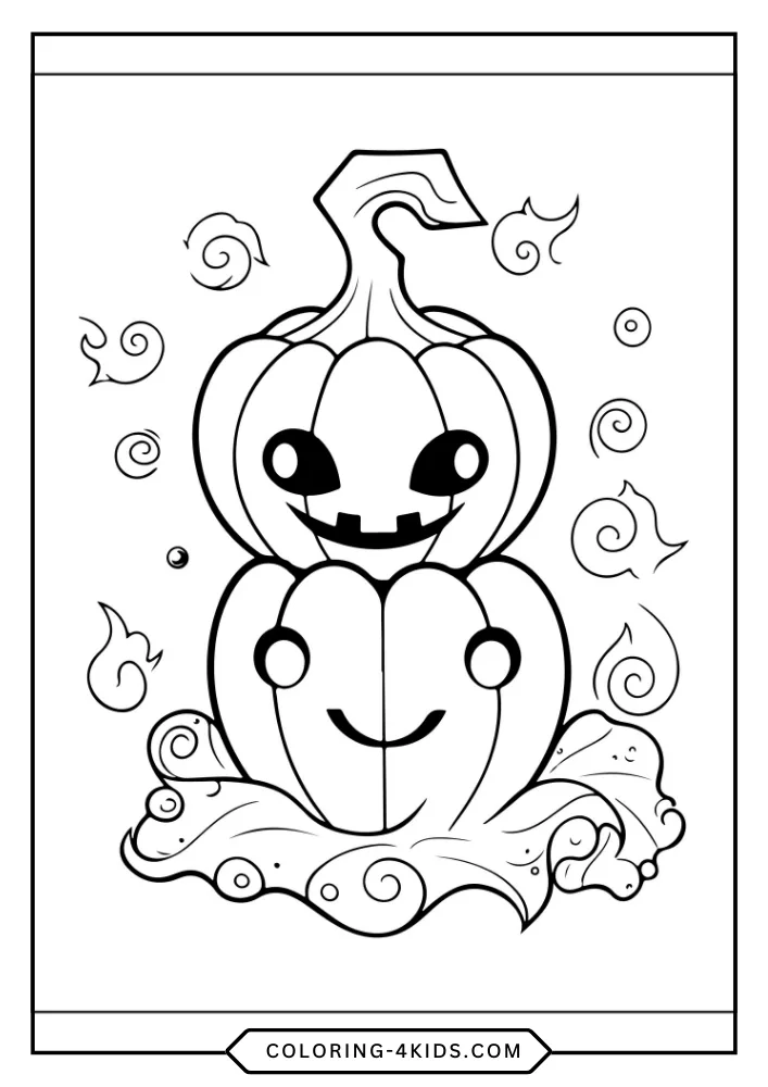 - Smiling Pumpkin Faces: Many pages featuring pumpkins with large, expressive eyes and happy smiles.